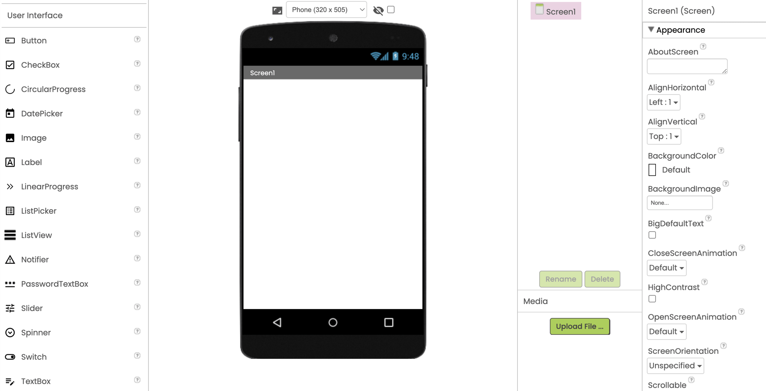 นักเรียนสามารถใช้งานส่วน Designer ใน App Inventor เพื่อสร้าง UI ได้