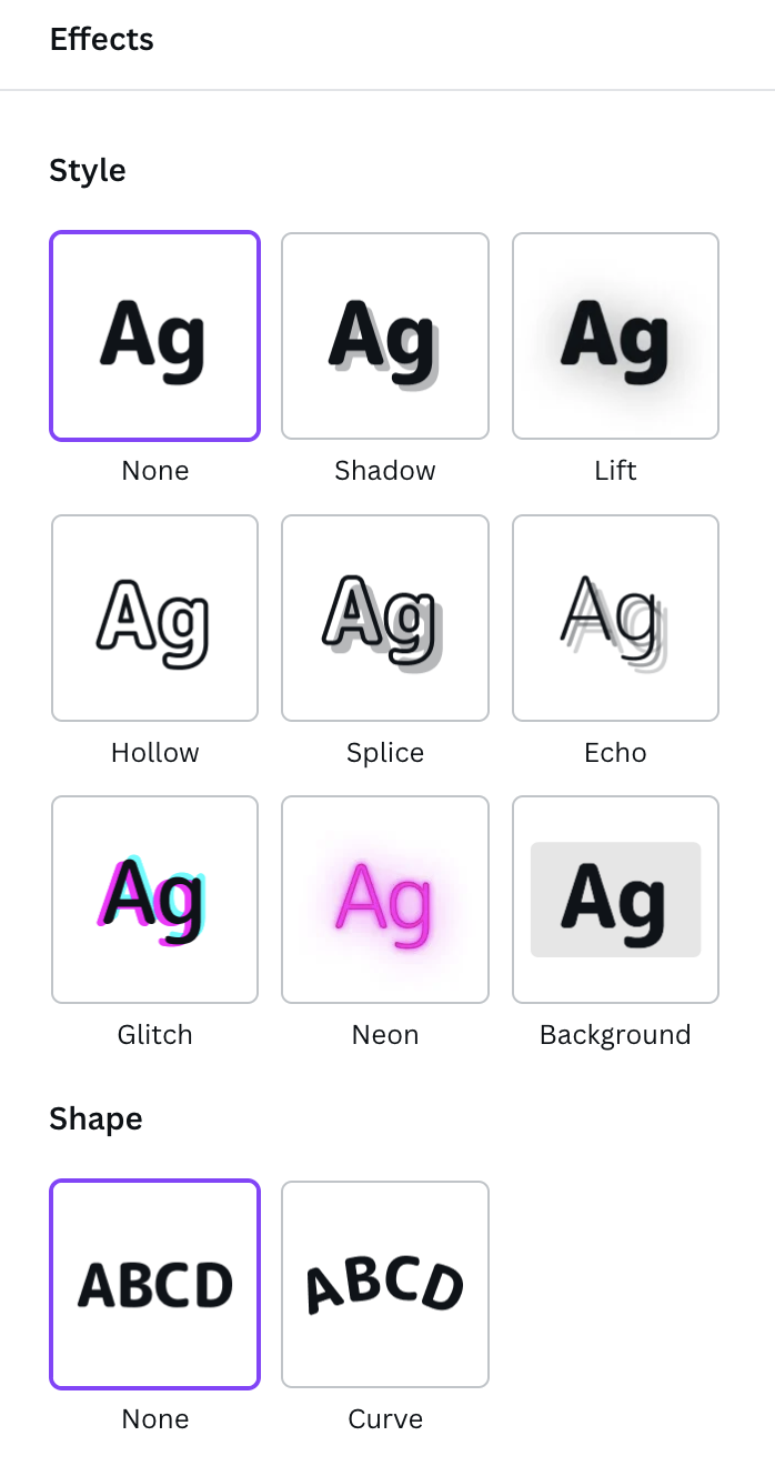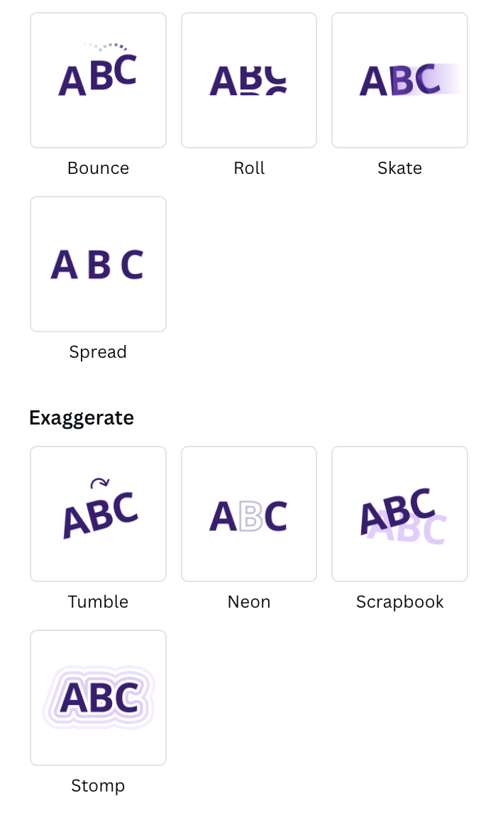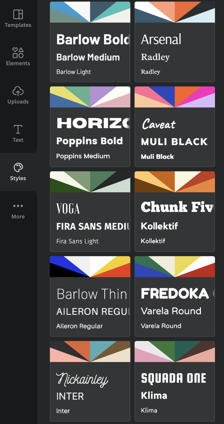 รายการสไตล์ (รูปแบบ) ที่ให้เลือกใช้